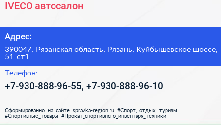 IVECO, автосалон по адресу 390047, Рязанская область, Рязань, Куйбышевское шоссе, 51 ст1 в дальнейшем Организация, размещена в следующих категориях: