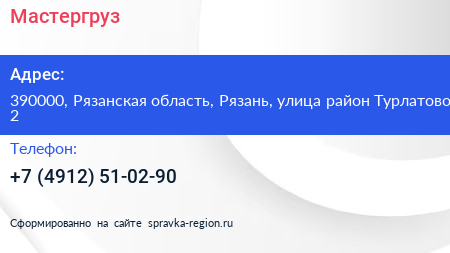 Мастергруз по адресу 390000, Рязанская область, Рязань, улица район Турлатово, 2 в дальнейшем Организация, размещена в следующих категориях:
