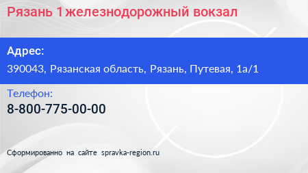 Рязань-1, железнодорожный вокзал по адресу 390043, Рязанская область, Рязань, Путевая, 1а/1 в дальнейшем Организация, размещена в следующих категориях: