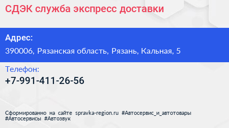 СДЭК, служба экспресс-доставки по адресу 390006, Рязанская область, Рязань, Кальная, 5 в дальнейшем Организация, размещена в следующих категориях: