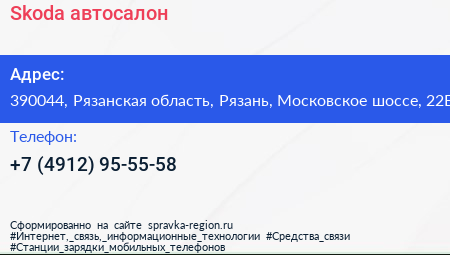 Skoda, автосалон по адресу 390044, Рязанская область, Рязань, Московское шоссе, 22Б в дальнейшем Организация, размещена в следующих категориях: