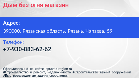 Дым без огня, магазин по адресу 390000, Рязанская область, Рязань, Чапаева, 59 в дальнейшем Организация, размещена в следующих категориях: