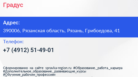 Градус по адресу 390006, Рязанская область, Рязань, Грибоедова, 41 в дальнейшем Организация, размещена в следующих категориях: