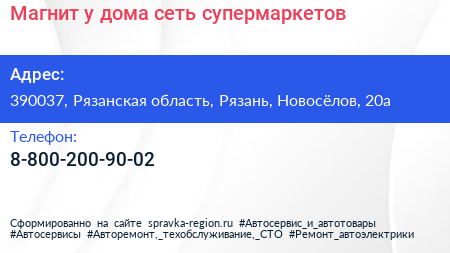 Магнит у дома, сеть супермаркетов по адресу 390037, Рязанская область, Рязань, Новосёлов, 20а в дальнейшем Организация, размещена в следующих категориях: