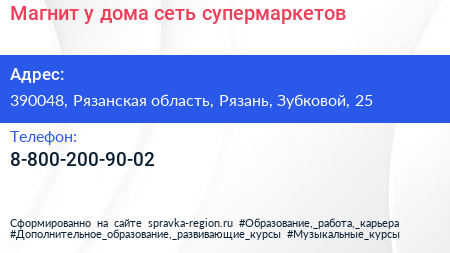 Магнит у дома, сеть супермаркетов по адресу 390048, Рязанская область, Рязань, Зубковой, 25 в дальнейшем Организация, размещена в следующих категориях: