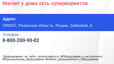 Магнит у дома, сеть супермаркетов по адресу 390037, Рязанская область, Рязань, Зубковой, 6 в дальнейшем Организация, размещена в следующих категориях: