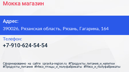 Мокка, магазин по адресу 390026, Рязанская область, Рязань, Гагарина, 164 в дальнейшем Организация, размещена в следующих категориях: