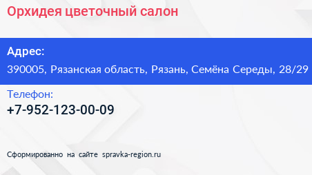Орхидея, цветочный салон по адресу 390005, Рязанская область, Рязань, Семёна Середы, 28/29 в дальнейшем Организация, размещена в следующих категориях: