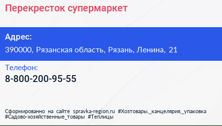 Перекресток, супермаркет по адресу 390000, Рязанская область, Рязань, Ленина, 21 в дальнейшем Организация, размещена в следующих категориях: