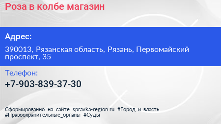 Роза в колбе, магазин по адресу 390013, Рязанская область, Рязань, Первомайский проспект, 35 в дальнейшем Организация, размещена в следующих категориях: