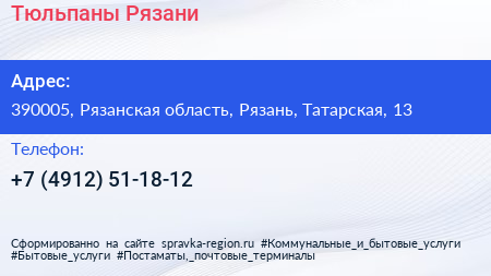 Тюльпаны Рязани по адресу 390005, Рязанская область, Рязань, Татарская, 13 в дальнейшем Организация, размещена в следующих категориях: