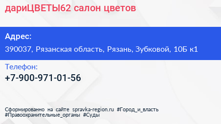 дариЦВЕТЫ62, салон цветов по адресу 390037, Рязанская область, Рязань, Зубковой, 10Б к1 в дальнейшем Организация, размещена в следующих категориях:
