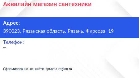 Аквалайн, магазин сантехники по адресу 390023, Рязанская область, Рязань, Фирсова, 19 в дальнейшем Организация, размещена в следующих категориях: