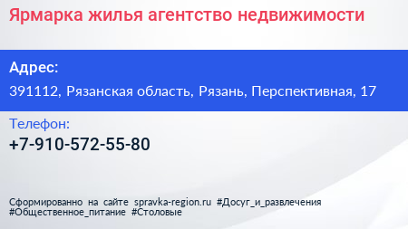 Ярмарка жилья, агентство недвижимости по адресу 391112, Рязанская область, Рязань, Перспективная, 17 в дальнейшем Организация, размещена в следующих категориях: