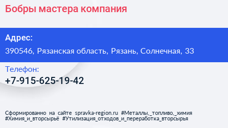 Бобры-мастера, компания по адресу 390546, Рязанская область, Рязань, Солнечная, 33 в дальнейшем Организация, размещена в следующих категориях: