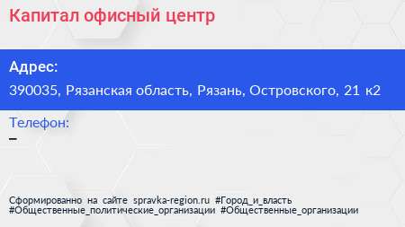 Капитал, офисный центр по адресу 390035, Рязанская область, Рязань, Островского, 21 к2 в дальнейшем Организация, размещена в следующих категориях: