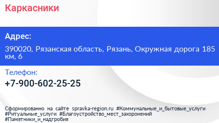 Каркасники по адресу 390020, Рязанская область, Рязань, Окружная дорога 185 км, 6 в дальнейшем Организация, размещена в следующих категориях: