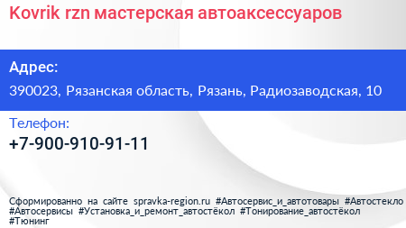 Kovrik-rzn, мастерская автоаксессуаров по адресу 390023, Рязанская область, Рязань, Радиозаводская, 10 в дальнейшем Организация, размещена в следующих категориях: