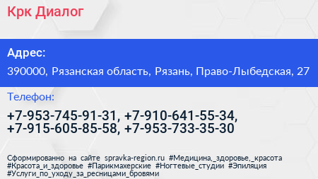 Крк Диалог по адресу 390000, Рязанская область, Рязань, Право-Лыбедская, 27 в дальнейшем Организация, размещена в следующих категориях: