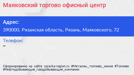 Маяковский, торгово-офисный центр по адресу 390000, Рязанская область, Рязань, Маяковского, 72 в дальнейшем Организация, размещена в следующих категориях: