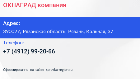ОКНАГРАД, компания по адресу 390027, Рязанская область, Рязань, Кальная, 37 в дальнейшем Организация, размещена в следующих категориях: