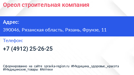 Ореол, строительная компания по адресу 390046, Рязанская область, Рязань, Фрунзе, 11 в дальнейшем Организация, размещена в следующих категориях: