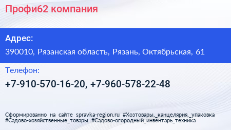 Профи62, компания по адресу 390010, Рязанская область, Рязань, Октябрьская, 61 в дальнейшем Организация, размещена в следующих категориях: