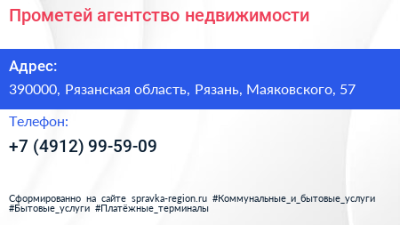 Прометей, агентство недвижимости по адресу 390000, Рязанская область, Рязань, Маяковского, 57 в дальнейшем Организация, размещена в следующих категориях: