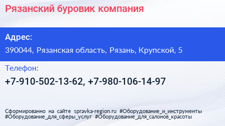 Рязанский буровик, компания по адресу 390044, Рязанская область, Рязань, Крупской, 5 в дальнейшем Организация, размещена в следующих категориях: