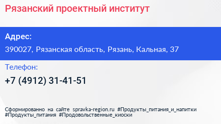 Рязанский проектный институт по адресу 390027, Рязанская область, Рязань, Кальная, 37 в дальнейшем Организация, размещена в следующих категориях: