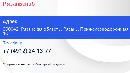 Рязаньснаб по адресу 390042, Рязанская область, Рязань, Прижелезнодорожная, 10 в дальнейшем Организация, размещена в следующих категориях: