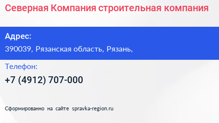 Северная Компания, строительная компания по адресу 390039, Рязанская область, Рязань, в дальнейшем Организация, размещена в следующих категориях: