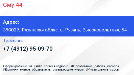 Сму-44 по адресу 390029, Рязанская область, Рязань, Высоковольтная, 54 в дальнейшем Организация, размещена в следующих категориях: