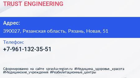 TRUST ENGINEERING по адресу 390027, Рязанская область, Рязань, Новая, 51 в дальнейшем Организация, размещена в следующих категориях: