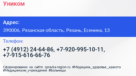 Уником по адресу 390006, Рязанская область, Рязань, Есенина, 13 в дальнейшем Организация, размещена в следующих категориях: