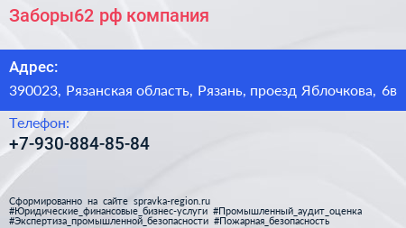 Заборы62.рф, компания по адресу 390023, Рязанская область, Рязань, проезд Яблочкова, 6в в дальнейшем Организация, размещена в следующих категориях: