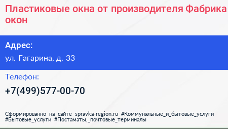 Пластиковые окна от производителя «Фабрика окон» по адресу ул. Гагарина, д. 33 в дальнейшем Организация, размещена в следующих категориях: