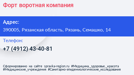 Форт, воротная компания по адресу 390005, Рязанская область, Рязань, Семашко, 14 в дальнейшем Организация, размещена в следующих категориях: