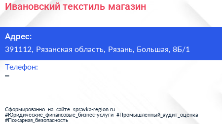 Ивановский текстиль, магазин по адресу 391112, Рязанская область, Рязань, Большая, 8Б/1 в дальнейшем Организация, размещена в следующих категориях: