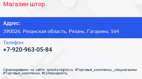 Магазин штор по адресу 390026, Рязанская область, Рязань, Гагарина, 164 в дальнейшем Организация, размещена в следующих категориях: