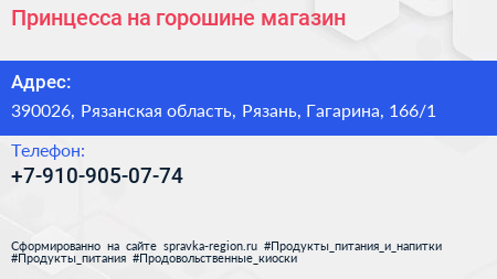 Принцесса на горошине, магазин по адресу 390026, Рязанская область, Рязань, Гагарина, 166/1 в дальнейшем Организация, размещена в следующих категориях: