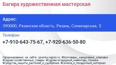 Багира, художественная мастерская по адресу 390000, Рязанская область, Рязань, Семинарская, 3 в дальнейшем Организация, размещена в следующих категориях: