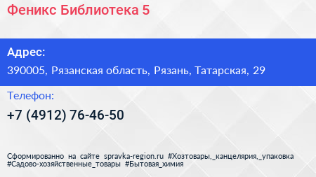Феникс, Библиотека №5 по адресу 390005, Рязанская область, Рязань, Татарская, 29 в дальнейшем Организация, размещена в следующих категориях: