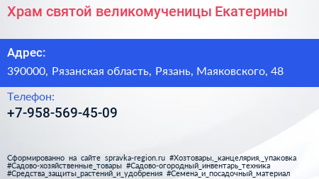 Храм святой великомученицы Екатерины по адресу 390000, Рязанская область, Рязань, Маяковского, 48 в дальнейшем Организация, размещена в следующих категориях: