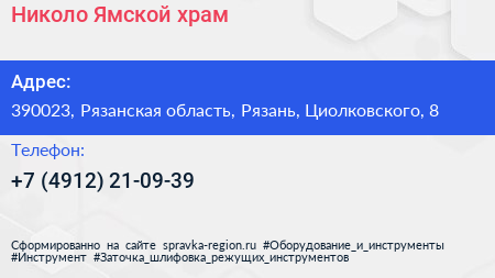 Николо-Ямской храм по адресу 390023, Рязанская область, Рязань, Циолковского, 8 в дальнейшем Организация, размещена в следующих категориях: