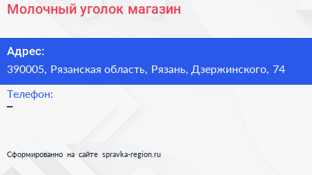 Молочный уголок, магазин по адресу 390005, Рязанская область, Рязань, Дзержинского, 74 в дальнейшем Организация, размещена в следующих категориях: