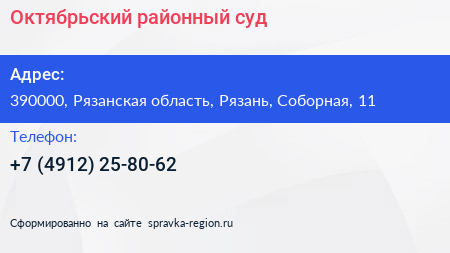 Октябрьский районный суд по адресу 390000, Рязанская область, Рязань, Соборная, 11 в дальнейшем Организация, размещена в следующих категориях: