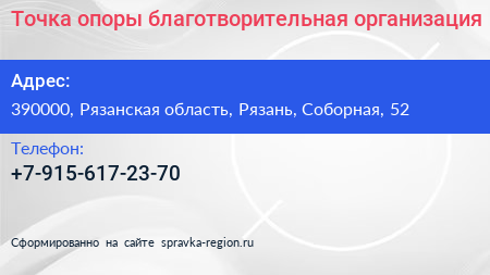 Точка опоры, благотворительная организация по адресу 390000, Рязанская область, Рязань, Соборная, 52 в дальнейшем Организация, размещена в следующих категориях: