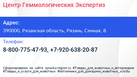 Центр Геммологических Экспертиз по адресу 390000, Рязанская область, Рязань, Сенная, 8 в дальнейшем Организация, размещена в следующих категориях: