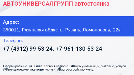 АВТОУНИВЕРСАЛГРУПП, автостоянка по адресу 390011, Рязанская область, Рязань, Ломоносова, 22а в дальнейшем Организация, размещена в следующих категориях: